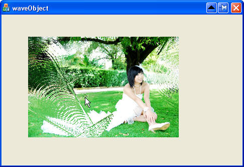 载入位图资源,并初始化WAVE_OBJECT,然后添加罗云彬给我们提供的一个基于水波的行船特效,小秀一把!呵呵